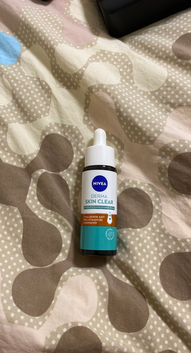 Nivea Derma Skin Clear serum bej cildi temizlemeye yardımcı hyaluronik asit ve pro-vitamin B5 içerir.