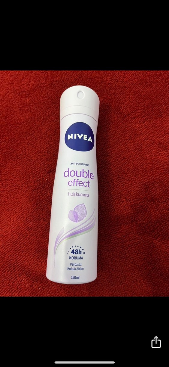 NIVEA Double Effect kadın deodorant 48 saat koruma sağlar, hızlı kuruyan formüle sahiptir ve 150ml hacmindedir.
