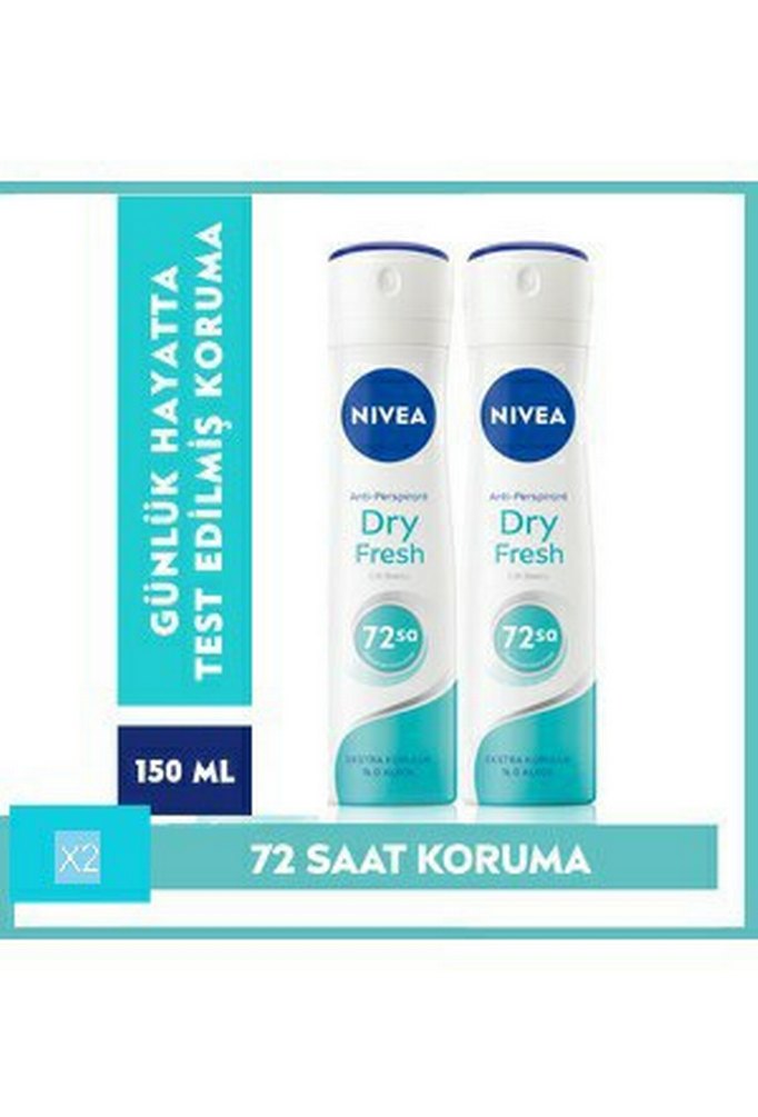 Nivea Dry Fresh kadın deodorant, 72 saat koruma sağlar. Her pakette 150 ml'lik iki sprey bulunur, uzun süre ferahlık sunar. ürünler kesinlikle sıfır kullanılmadı