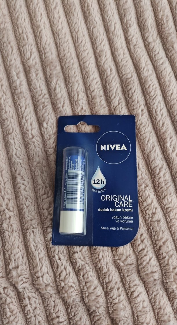 Nivea Original Care dudak balmı, shea yağı ve panthenol ile 12 saat yoğun bakım ve koruma sağlar. Kuru dudakları yatıştırır ve besler.