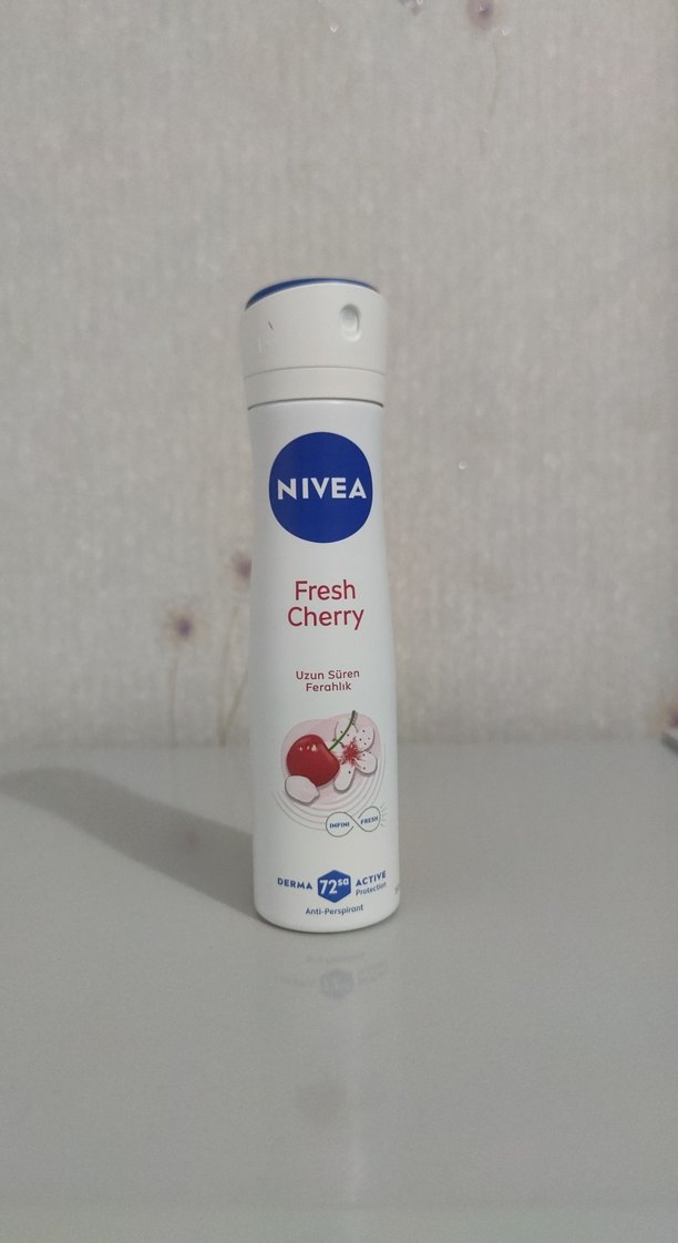 NIVEA Fresh Cherry deodorant sprey, kiraz kokusuyla uzun süre ferahlık ve 72 saat koruma sağlar.