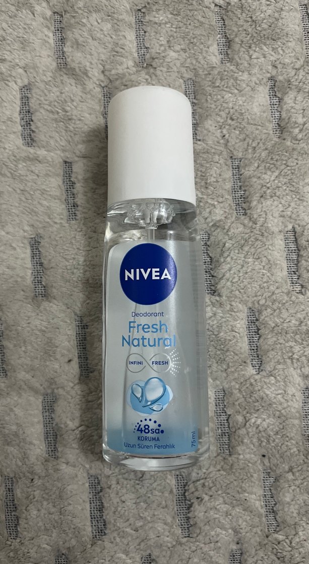 NIVEA Fresh Natural kadın deodorant, 48 saat koruma ve uzun süre ferahlık sağlar. 75 ml sprey şişede sunulur. hiç kullanılmadı.