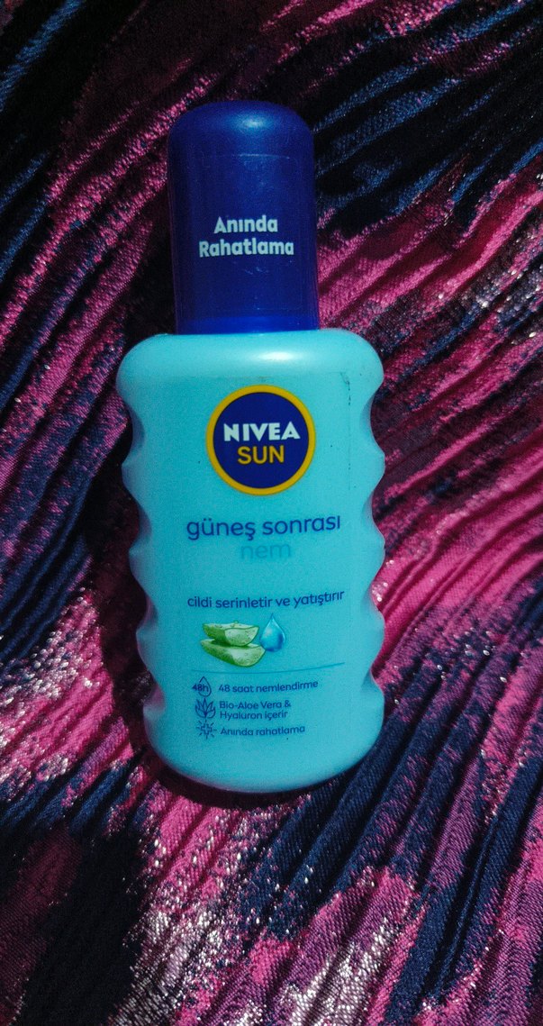 Nivea Sun güneş sonrası losyon, aloe vera ve hyalüronik asit ile cildi serinletir, yatıştırır ve 48 saat nem sağlar.