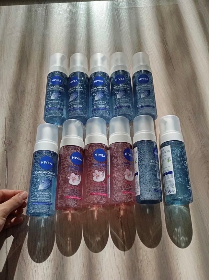 Yeşil De Mevcuttur Nivea'nın mavi ve pembe köpüren yüz temizleyicileri, cildi nazikçe temizleyip ferahlatmak için tasarlanmıştır. Her şişede kolay kullanım için pompa bulunur.