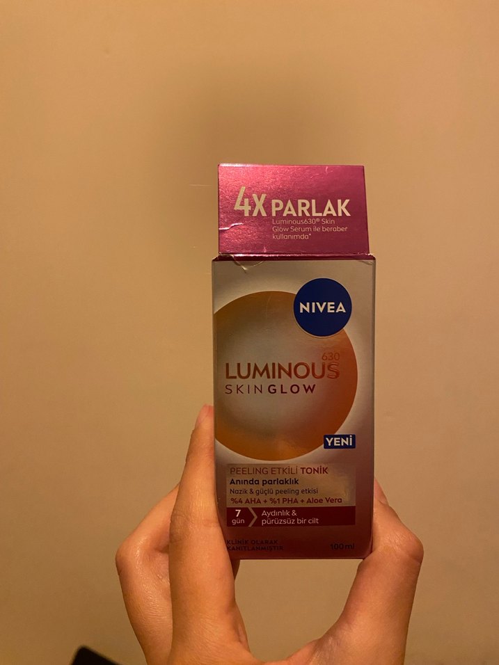 Hiç kullanılmadı mion türkiyeden alındı . Nivea Luminous Skin Glow peeling etkili tonik, anında parlaklık sağlar. 7 AHA, %6 PHA ve Aloe Vera içerir, nazikçe peeling yapar ve cildi bakım sağlar.