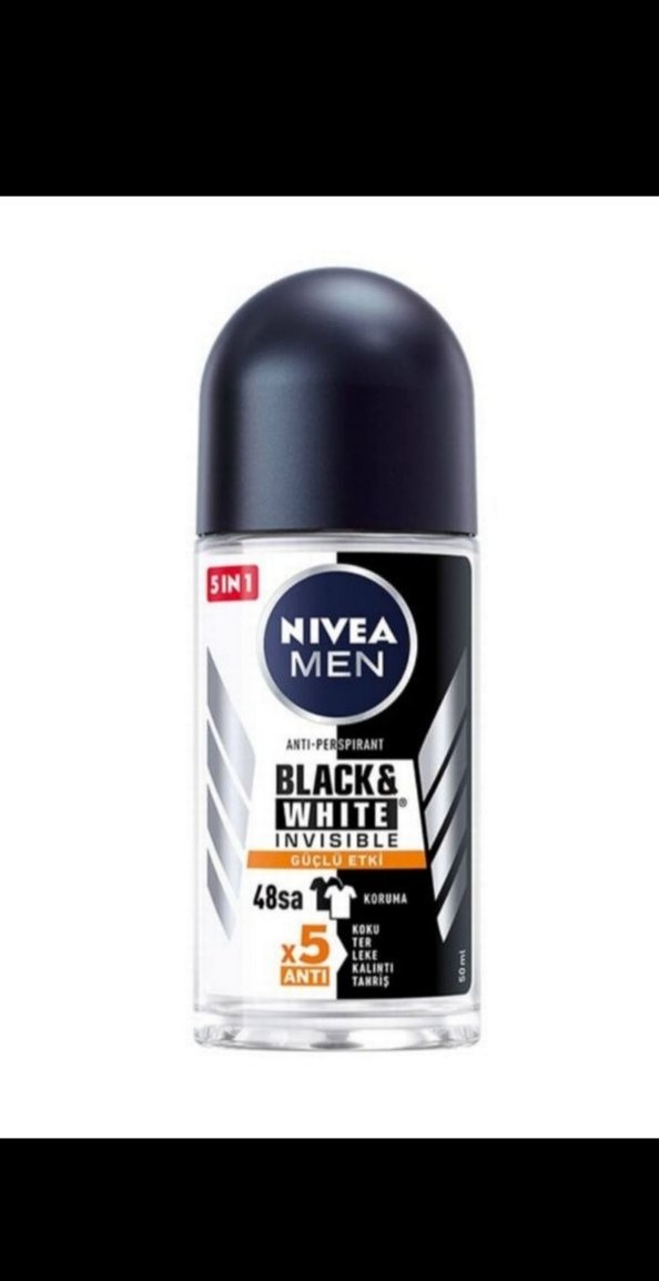 Nivea Men Black & White roll-on deodorant, 48 saat ter ve kokuya karşı koruma sağlar. Beyaz iz ve sarı leke bırakmaz.