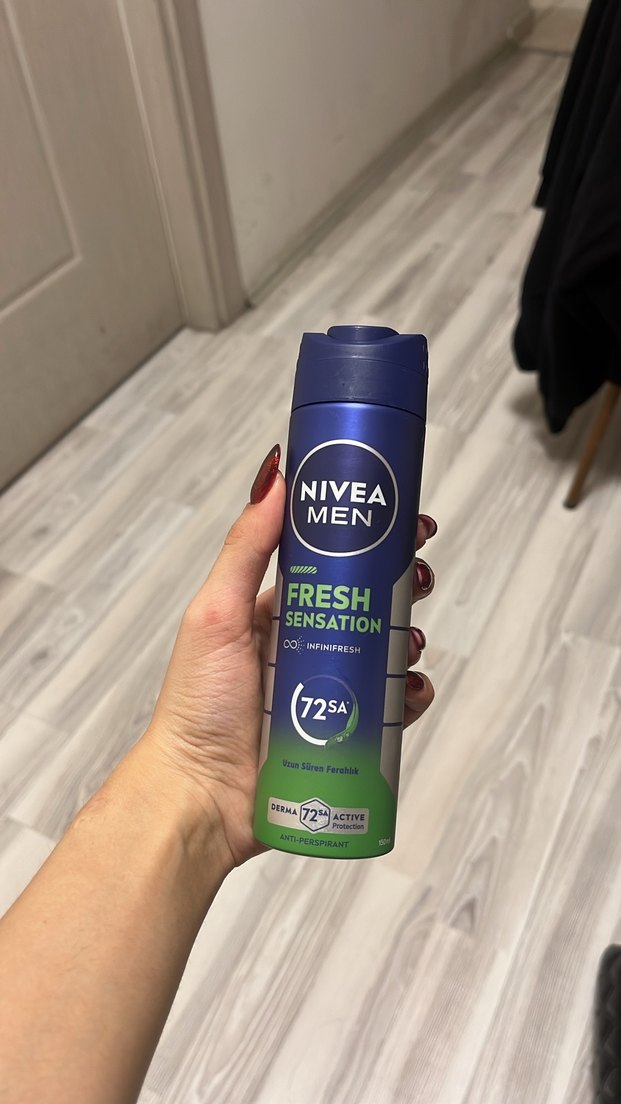 Nivea Men Fresh Sensation deodorant spreyi, 72 saat aktif koruma ve ferah koku sağlar. Tazelik ve kuru hissettirir. Hiç kullanılmadı yanlış almışım