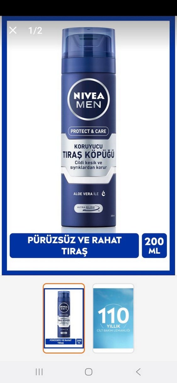 Nivea Men koruyucu tıraş köpüğü, aloe vera ile cildi kesik ve sıyrıklardan koruyarak pürüzsüz ve rahat tıraş sağlar. 200 ml parlak mavi şişede.