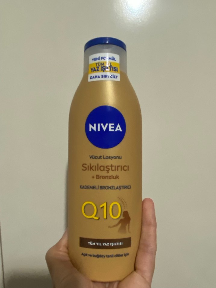 Nivea Q10 vücut losyonu, cildi sıkılaştırır ve kademeli olarak bronzlaştırır, yaz ışıltısını artırır. Açık ve buğday tenler için uygundur. Yeni alındı. Sadece denendi , dolu durumda. Başka bir ürün kullandığım için bunu satıyorum