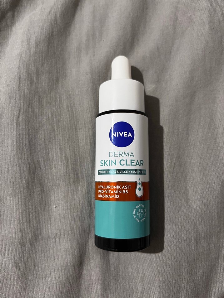Nivea Derma Skin Clear serumu, hyaluronik asit, pro-vitamin B5 ve niasinamid içerir, ciltteki lekeleri ve akneleri azaltmaya yardımcı olur. DM üzerinden daha detaylı bilgi isterseniz yardımcı olurum