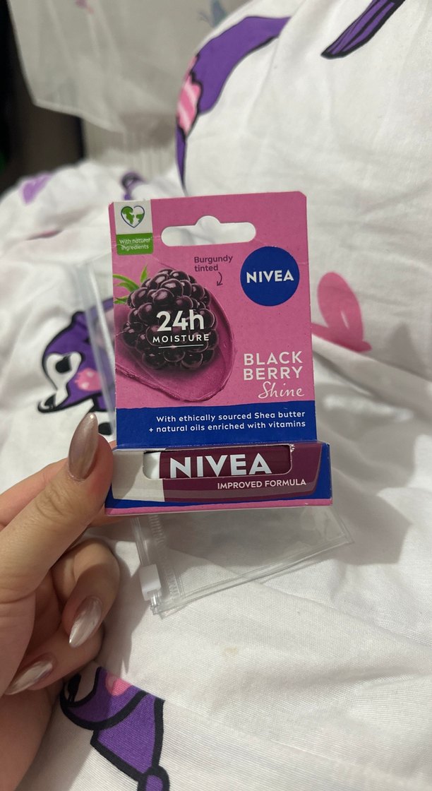 Nivea Siyah Böğürtlen Renkli Dudak Balmı, etik olarak elde edilen shea yağı ve vitaminlerle zengin doğal yağlar içerir. 24 saat nem sağlar, geliştirilmiş formüle sahiptir.