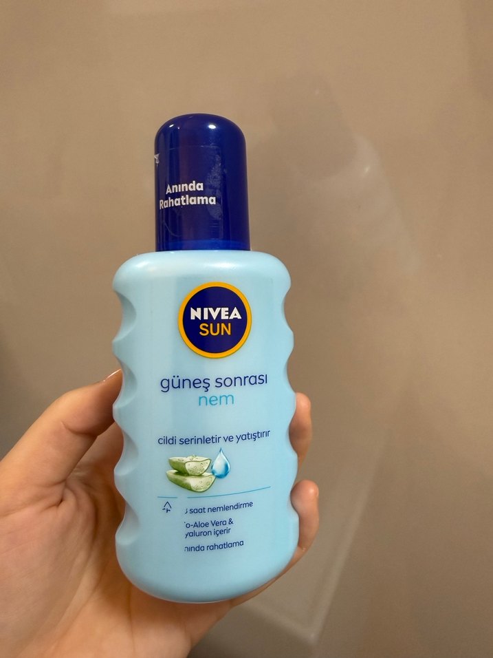 Nivea Sun güneş sonrası nemlendirici, cildi anında serinletir ve yatıştırır. Aloe Vera ve hyaluronik asit ile 3 saate kadar nem sağlar.