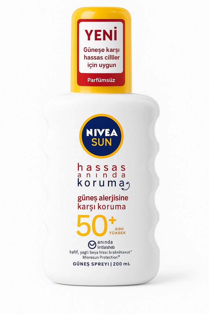 NIVEA Sun sprey, hassas ciltler için anında güneş alerjisine karşı koruma sağlar. Parfümsüz, hafif ve yağsız bir yapıya sahiptir.