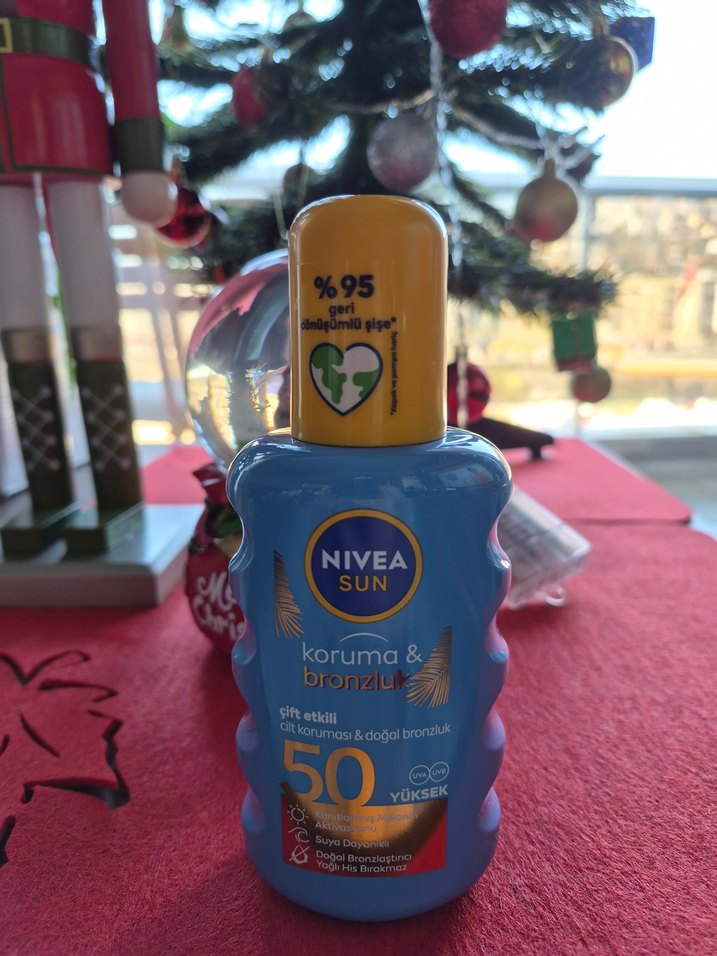 Nivea Sun SPF 50 güneş losyonu, cildi yüksek koruma sağlar ve doğal bronzluk destekler. %95 geri dönüştürülmüş plastik şişe içerir. ☀️ yeni etiketli 2025 eylul de alindi
