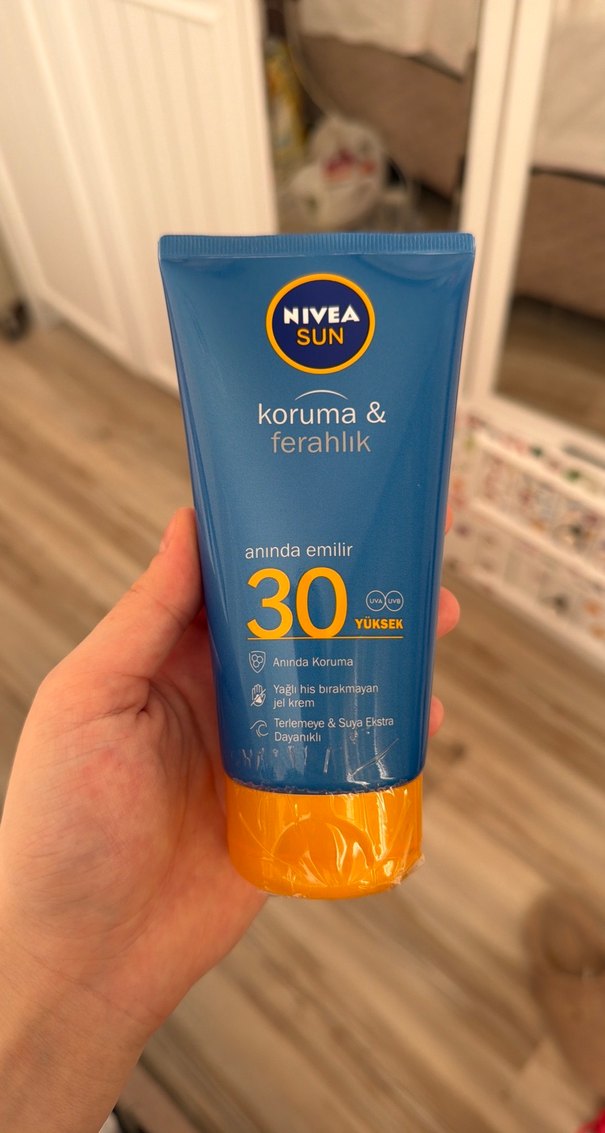 Nivea Sun SPF 30 güneş kremi anında koruma ve ferahlık sağlar. Yağlı his bırakmadan hızla emilir, suya dayanıklıdır. ☀️ kapalı ürün açılmadı