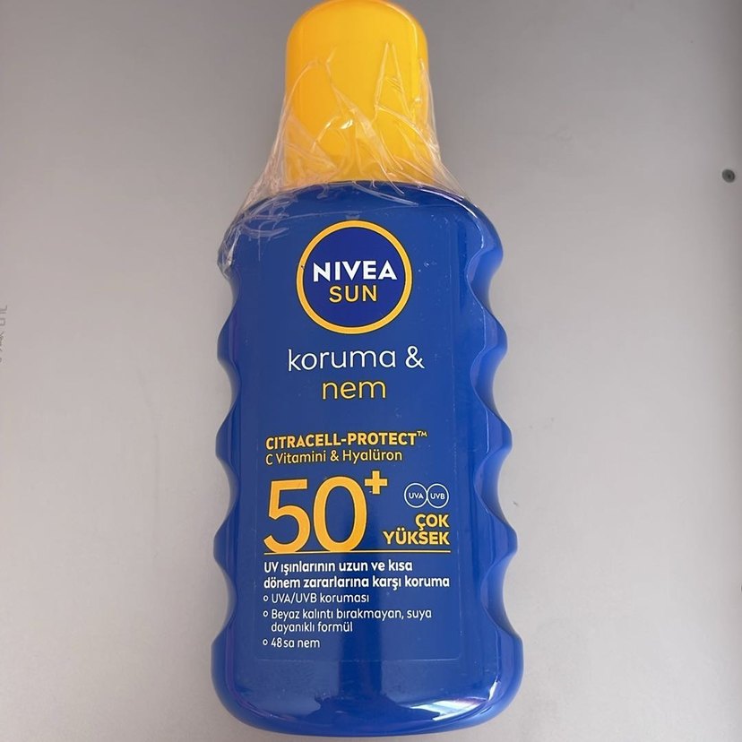 Nivea Sun Koruma & Nem SPF 50+ Güneş Kremi watsonstan yeni aldım hiç kullanılmadı Nivea Sun Koruma & Nem SPF 50+ çok yüksek UVA/UVB koruması sağlar. Citracell-Protect™, C Vitamini ve Hyalüron içerir. Beyaz kalıntı bırakmaz, suya dayanıklıdır. 48 saat nem sağlar. ☀️