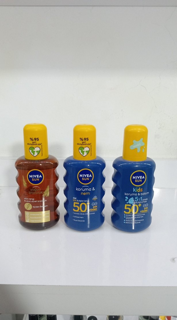 Nivea Sun %95 nem koruması ve SPF 50 güneş koruması sunar. Çocuklar için özel koruma ve yoğurt bronzlaştırıcı içerir. ☀️