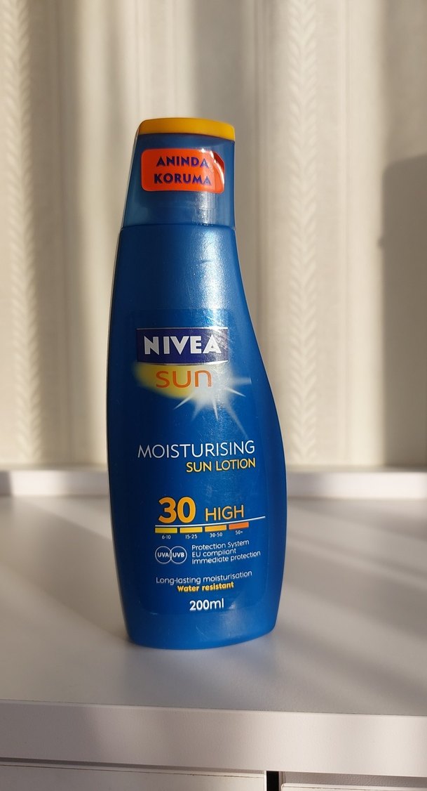 Nivea Sun koruyucu güneş losyonu SPF 30 ile yüksek koruma sağlar. Uzun süre nemlendirir ve suya dayanıklıdır. 200ml şişede anında koruma sunar. ☀️ Yüzde seksen dolu