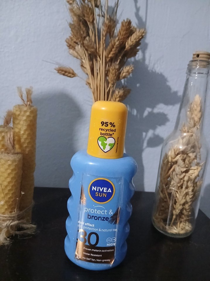Nivea Sun Protect & Bronze SPF 30, yüksek koruma ve doğal bronzlaşma etkisi sunar. Şişe %95 geri dönüştürülmüş malzemeden üretilmiştir. 200 ml olup; İnternet satış fiyatı 600 tldır ..