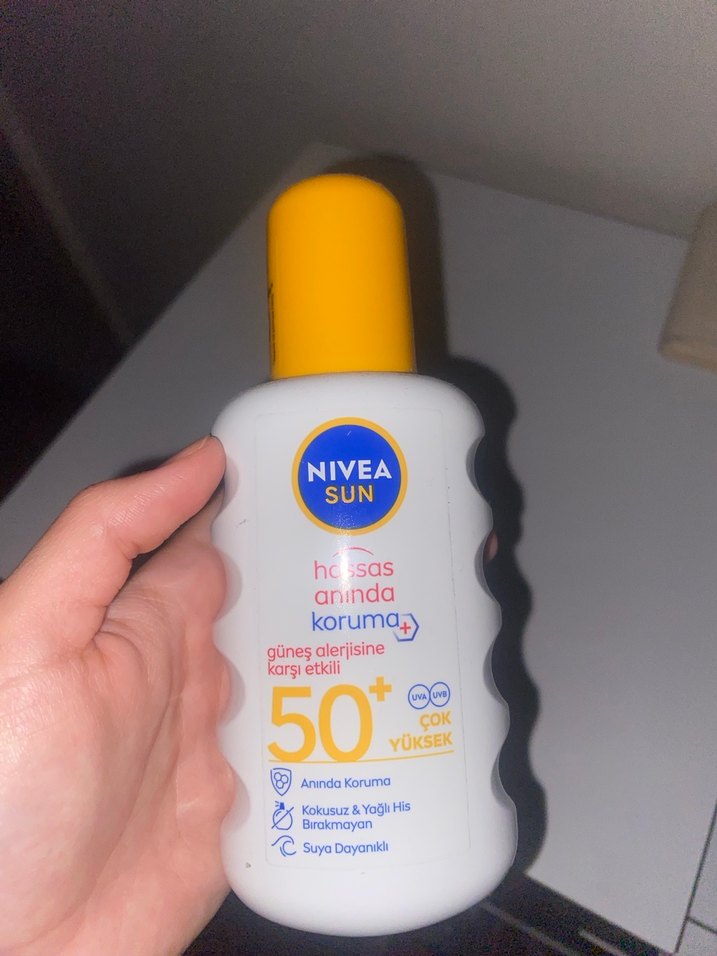 NIVEA Sun SPF 50+ hassas ciltler için anında koruma sağlar, kokusuz ve yağlı his bırakmaz, suya dayanıklıdır.