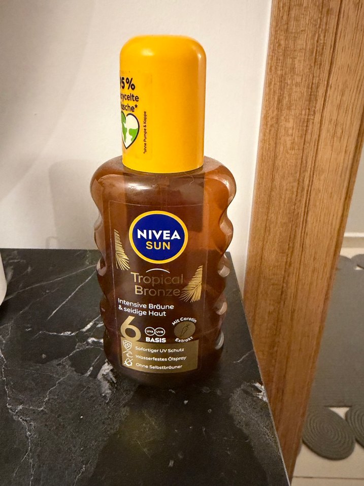 NIVEA Sun Tropikal Bronzlaştırıcı Yağ SPF 6, hafif koruma sağlar ve cildi besleyerek derin bronzluk kazandırır. Tropikal kokulu formüle sahiptir.