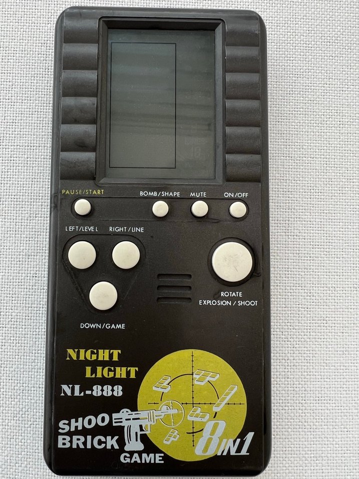 NL-888 el tipi oyun konsolu, siyah renkte ve çoklu kontrol düğmeleriyle birlikte gelir. Pause/start, bomb/shape, mute ve on/off düğmeleri bulunur. 8-in-1 oyunları destekler.