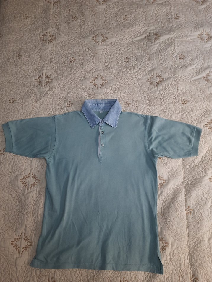 ** ÇOK İYİ DURUMDA ** Fıstık yesili,yakasi denim kumaştan ve kısa kollu, rahat kesim erkek polo tişört. Günlük ve sokak stiline uygun. ÖLÇÜLEN ÖLÇÜLERİ; boy:70 cm en(omuzdan omuza):48 cm en(koltuk altından):54 cm kol uzunluğu(omuzdan):25 cm kol uzunluğu(koltuk altından):21 cm