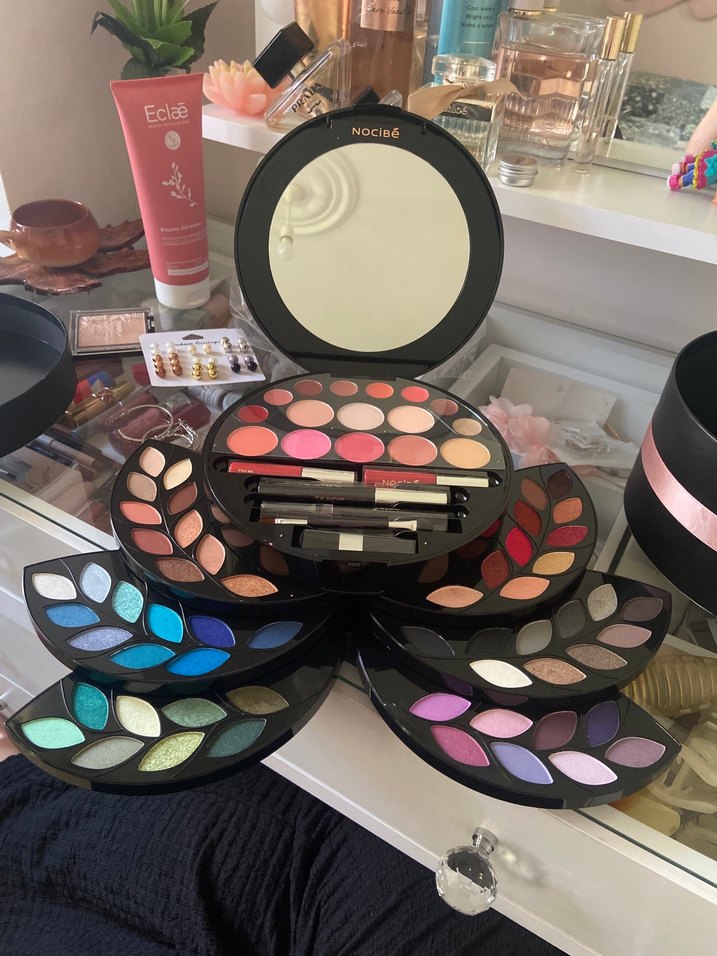 Nocibé göz farı paleti, canlı koyu pembe tonları, dahili ayna ve çoklu dudak ile göz kalemleri ve maskara bulunan bir settir. İçerisinde 56 Adet Farklı Renk tonlarından farlar vardır 1 adet maskara 2 adet gloss 1 adet göz kalemi 2 adet fırça 8 adet ruj 8 adet allık ve 1 aynası bulunuyor. Sıfır jelatinli ve kutulu duruyor