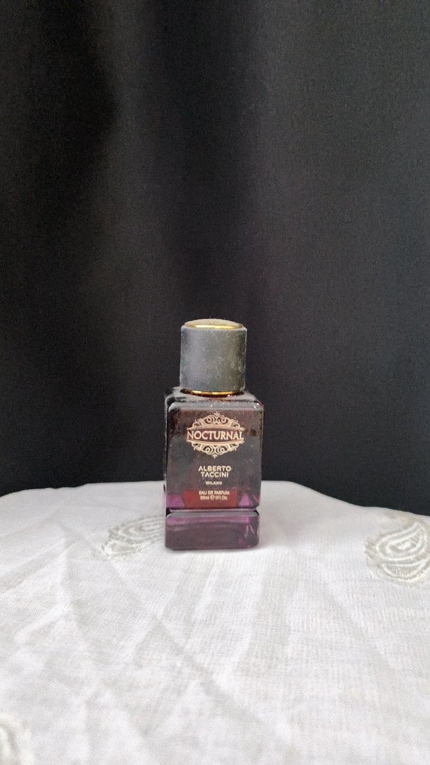 Nocturna Alberto Taccini kadın parfümü, kare şişesi ve koyu kapaklı tasarımıyla dikkat çekiyor.