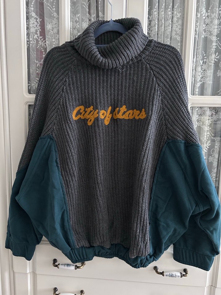 Gri boğazlı, nakış detaylı, salaş kesim örme kazak. Alt kısımları dolgulu kumaşlı uzun kollu, rahat ve şık sokak stili. 36/40 beden arası uyum göstermektedir.Küçük bir ip detayı mevcuttur. Görsellerde bellidir.