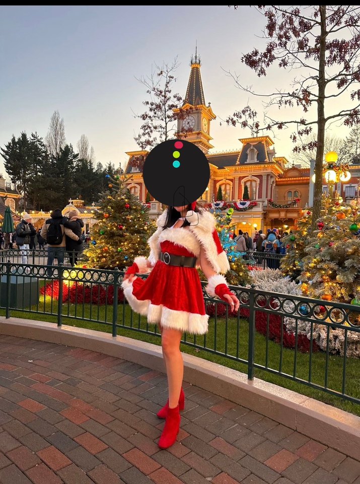Kırmızı ve beyaz peluş detaylı Noel anne elbisesi