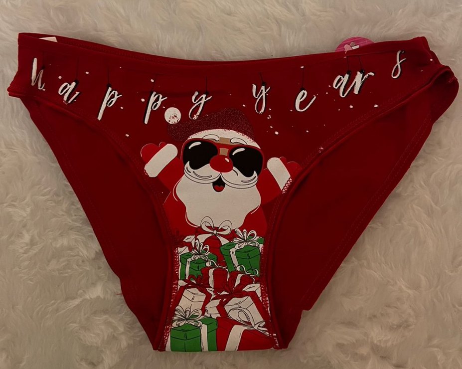 Kırmızı mini kadın külot, renkli Noel Baba ve hediye baskısıyla yeni yıla şanşlı girin M L bedendir