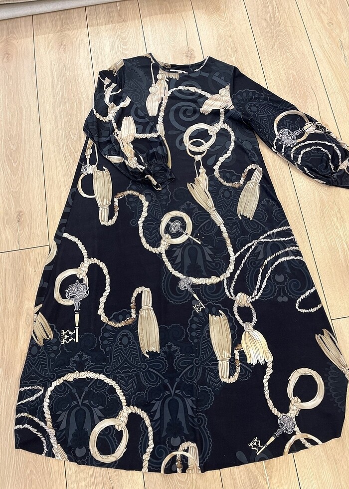 Elbise kumaş ütü istemez çok rahat bir elbise dir 1 bedendir 44 bedene kadar rahatlıkla giyilir Hiç bir deformesi yoktur renk siyahtır.