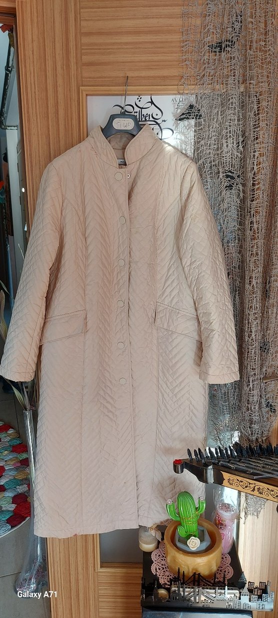 Uygulamadan aldım ama hiç giymedim. Hiçbir deforme yok, sıfır ayarında.Baharlık.Tesettüre de uygun. 2 beden yazıyor 40/42 bedenlere uygun.