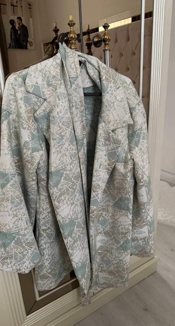 Kadınlar için gri uzun keten ceket, kesilmiş yaka ve drapeli tasarımıyla ofis için uygun, sokak stili Paris havasında.