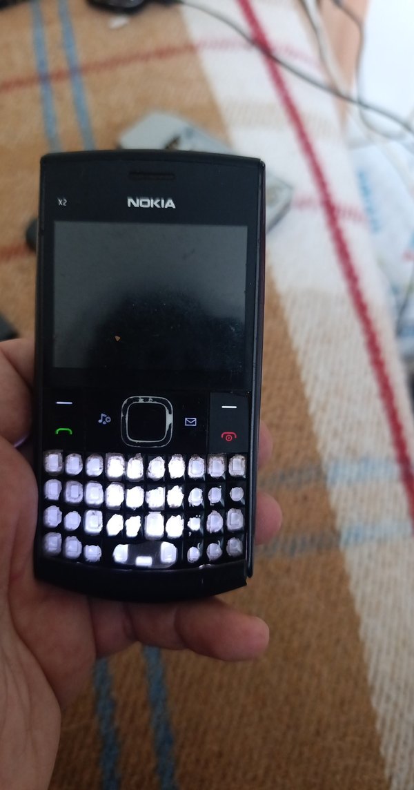 Nokia X2 model, siyah renkli ve QWERTY tuşlu kompakt telefon. cihaz 7 yıl mağdurudur ekran sorunu var .