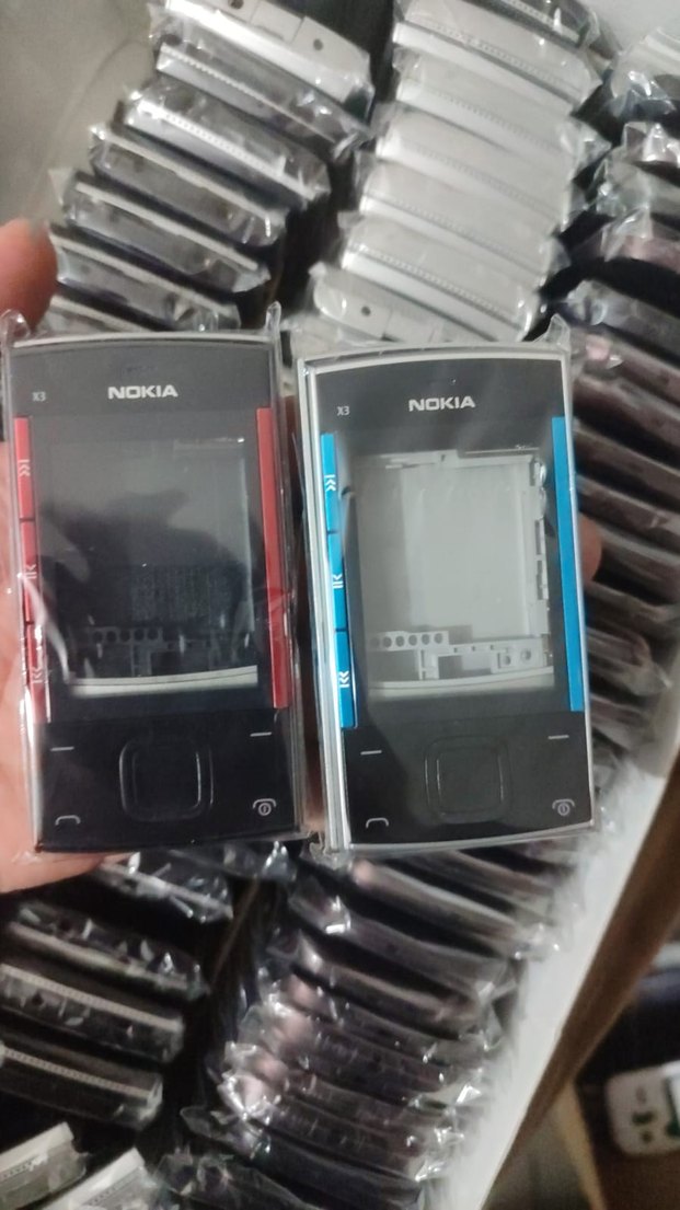 Siyah Nokia X3 telefon kasası, yan renk detayları ile. Değişim veya tamir için uygun.