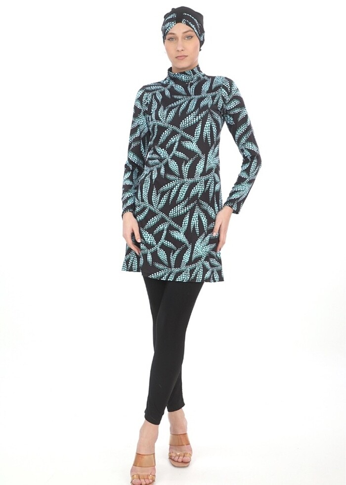 Ürünüm tayt bone ve tunik olmak üzere 3 parçadan oluşmaktadır. Kumaşı oldukça esnek ve hızlı kuruyan kumaştır. Üreticisiyim dolayısı ile ürünlerim yenidir.