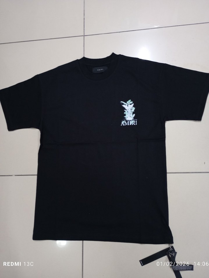 Pamuk kumaştan, kısa kollu ve yuvarlak yakalı AMIRI baskılı siyah erkek tişört, rahat kesimi ile günlük kullanıma uygundur. ✨