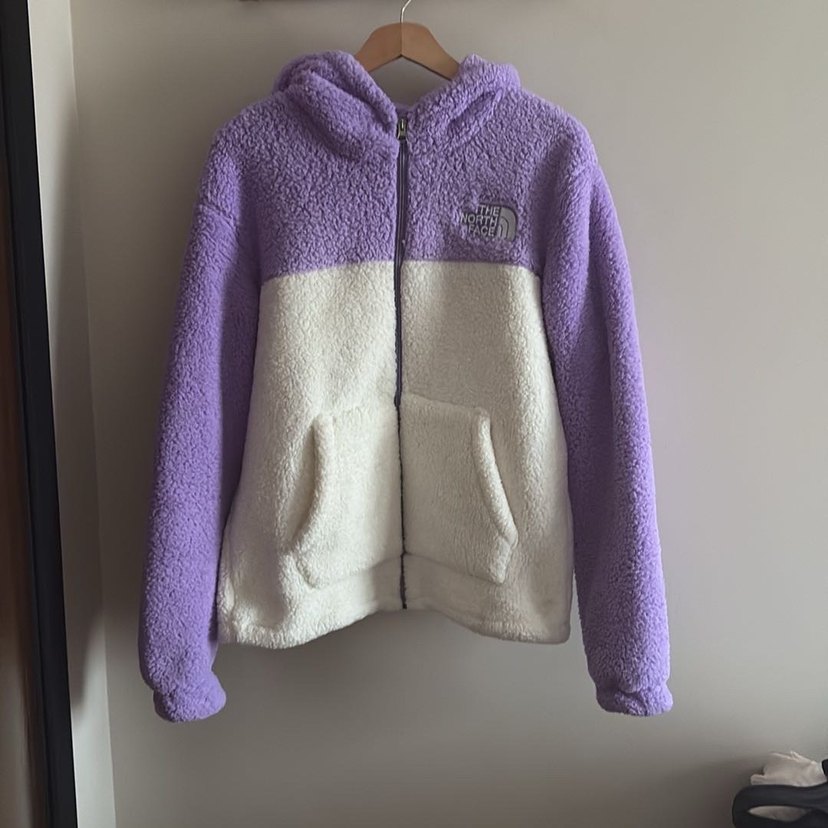 North face Mor Beyaz Fermuarlı Polar Ceket