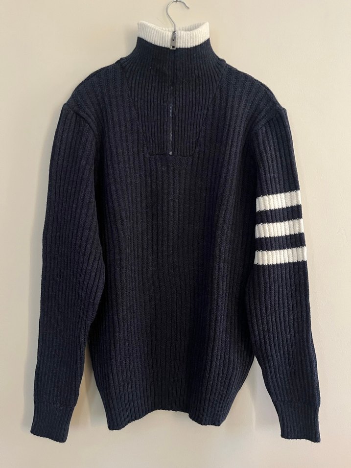 Yakası fermuarlı, balıkçı yaka veya v yaka olarak kullanılabilir Lacivert, tek kolunda beyaz çizgileri var Elastan içerir KULLANILMAMIŞTIR #northofnavy #northofnavykazak #erkekkazak #erkekfermuarlıkazak #erkekbalıkçıyakakazak #balıkçıyakakazak #vyakakazak #erkeklacivertkazak #lacivertkazak