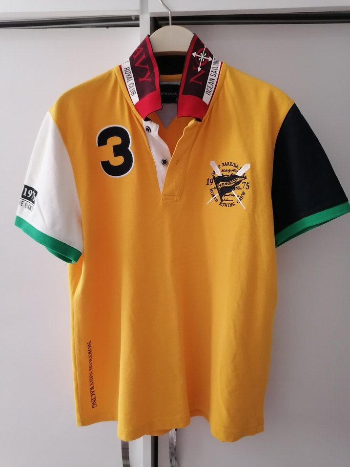 Sarı renkli, düğmeli yakalı, baskılı detaylara sahip erkek kısa kollu polo tişört. Sentetik kumaştan, normal boyda ve regular fit kesimle günlük kullanıma uygun.