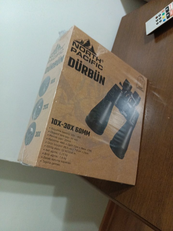 North Pacific dürbün, 10x-30x büyütme ve 60 mm lenslerle net görüntü sağlar. Dayanıklı yapıya sahip, taşıma çantası ve kayışı içerir. Ağırlığı 1,15 kg.
