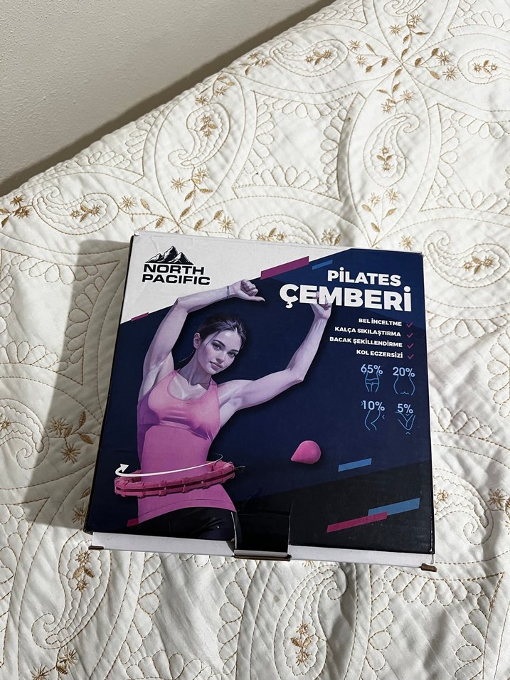 North Pacific marka, koyu pembe renkli, desenli pilates bandı. %65, %20, %10 ve %5 direnç seviyeleri ile etkili egzersiz sağlar. ♀️ürünün içinde ki topta kum var bu yüzden sallandıkça kum sesi çıkıyor. Bende ikinci el aldım ama çok kullanmadım uyguna veriyorum