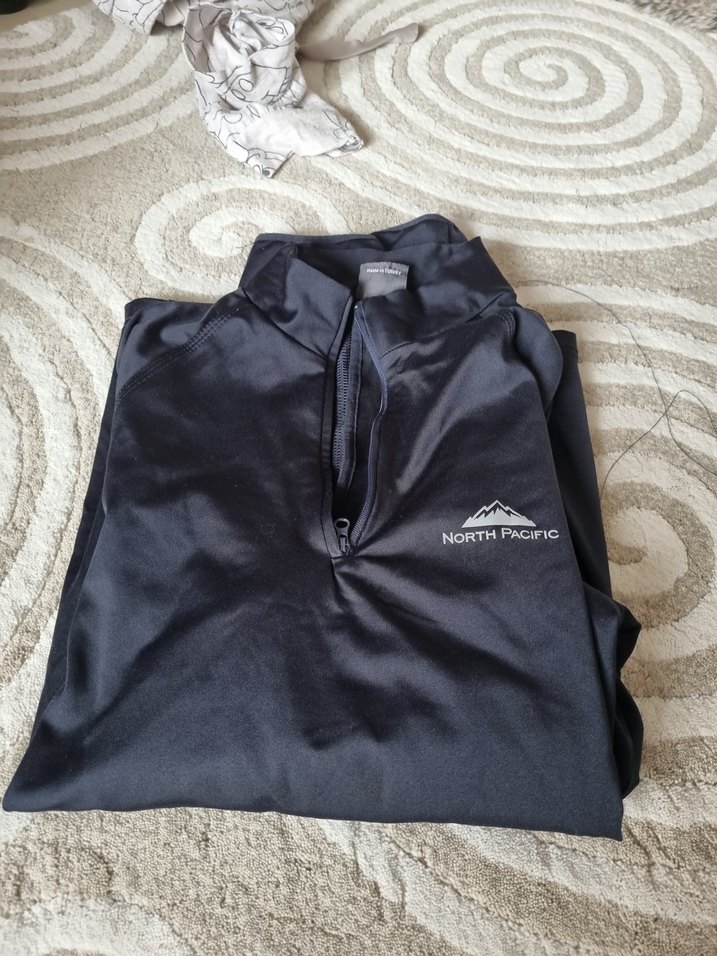 North Pacific markalı siyah erkek polar, yüksek yakalı, uzun kollu ve fermuarlı. Fit kesim ve baskılı logo ile dış mekan için uygun. ️