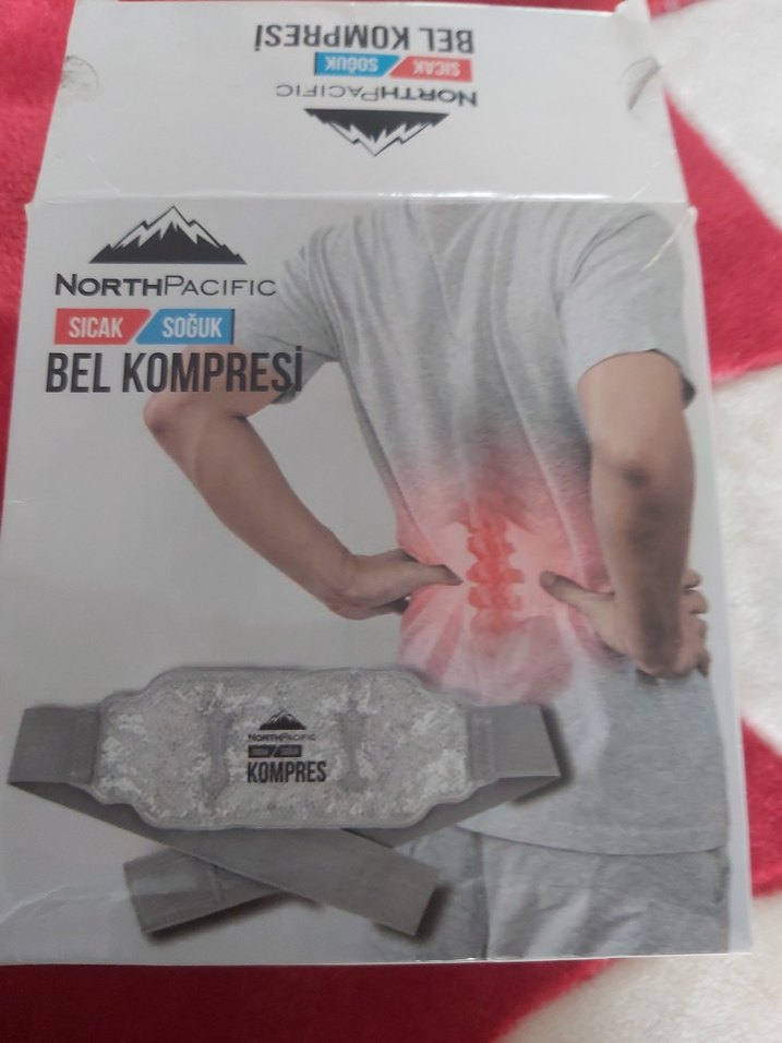 NorthPacific gri renkli, baskılı ve normal boyda bel kompresi. Sıcak ve soğuk kullanıma uygun, sırt ağrısını hafifletir.