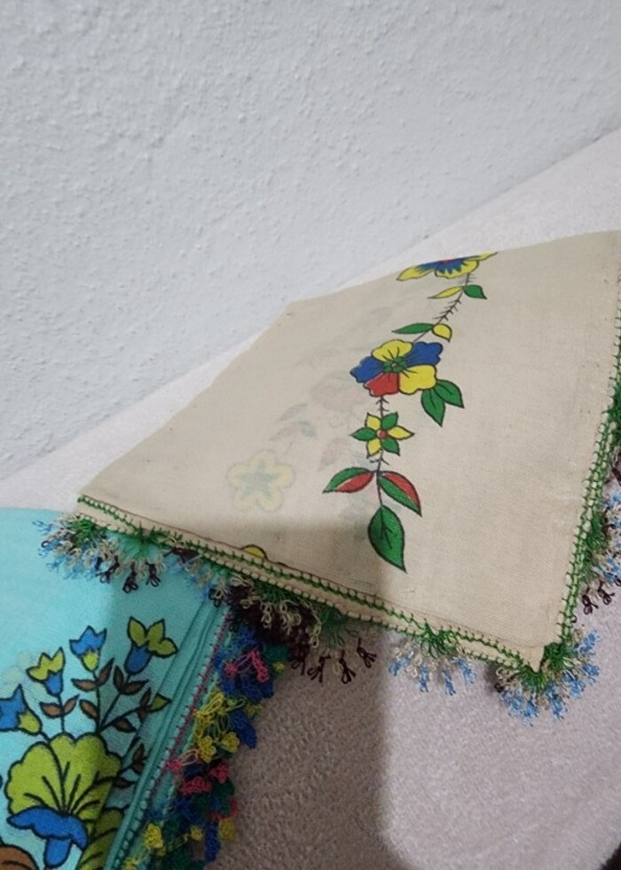 Nostaljik ağır oyalı anne tülbenti. Hasarsız, hiç kullanılmamış, naylon karışım sağlam tülbent