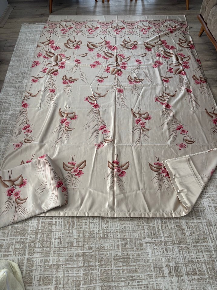 saten perde 2 adet. kumaşlar babannemin çeyizinden kalma , diğerleride profilimde mevcut. 2 adet ölçüleri 225x135 eski kumaşlardan.