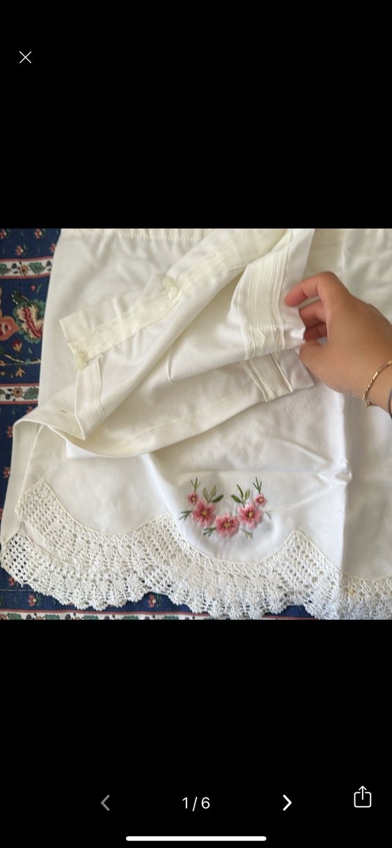 Pastel nakışlı çiçekler ve zarif tığ işi dantel kenarlarla beyaz yastık kılıfı. Yumuşak ve şık tasarım. (4. Fotodaki gibi cok kücük leke var)