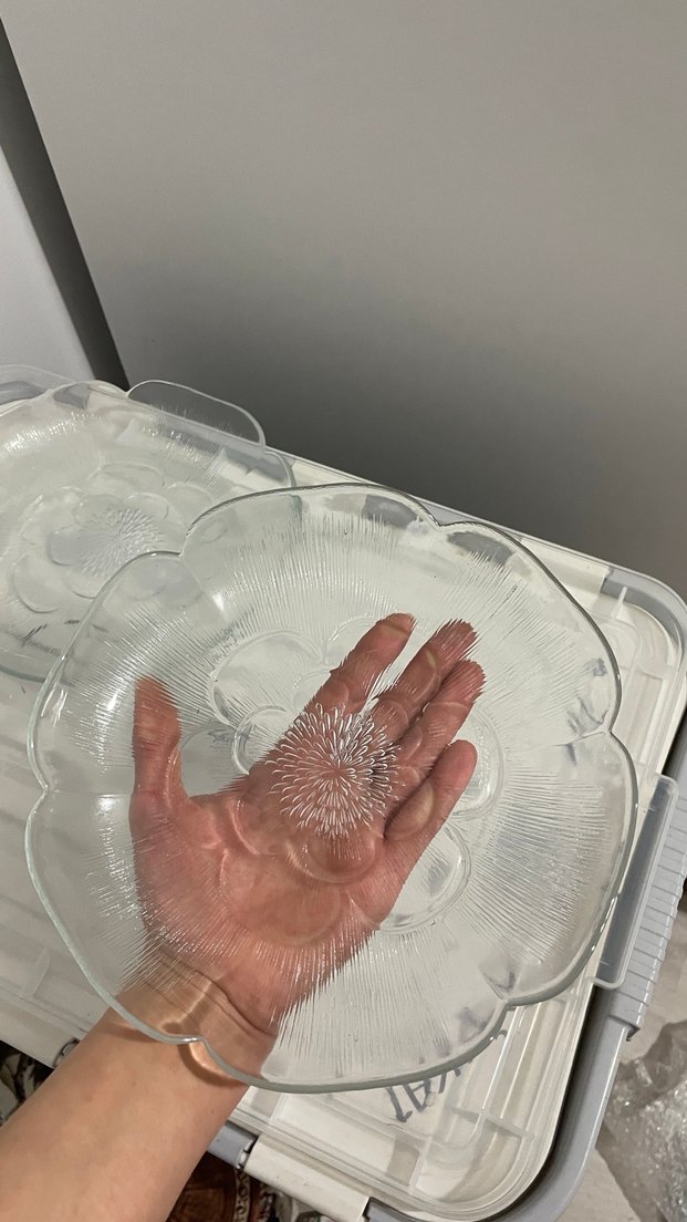 Nostaljik Şeffaf Cam Gelincik Desenli Tabak